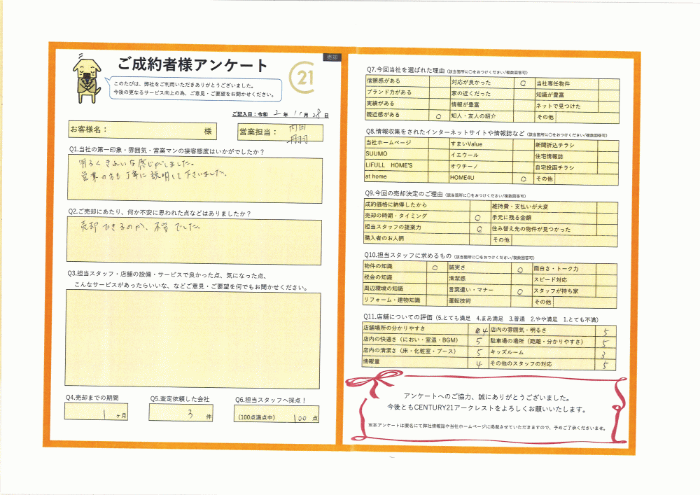 Q1.当社の第一印象、雰囲気、営業マンの接客態度はいかがでしたか?: