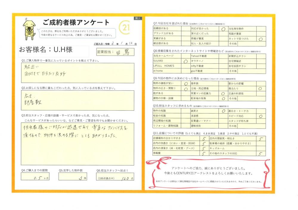 R3.1.12 東村山市U.H様 | ご購入成約事例|おうちの仲介+(株式会社アークレスト)