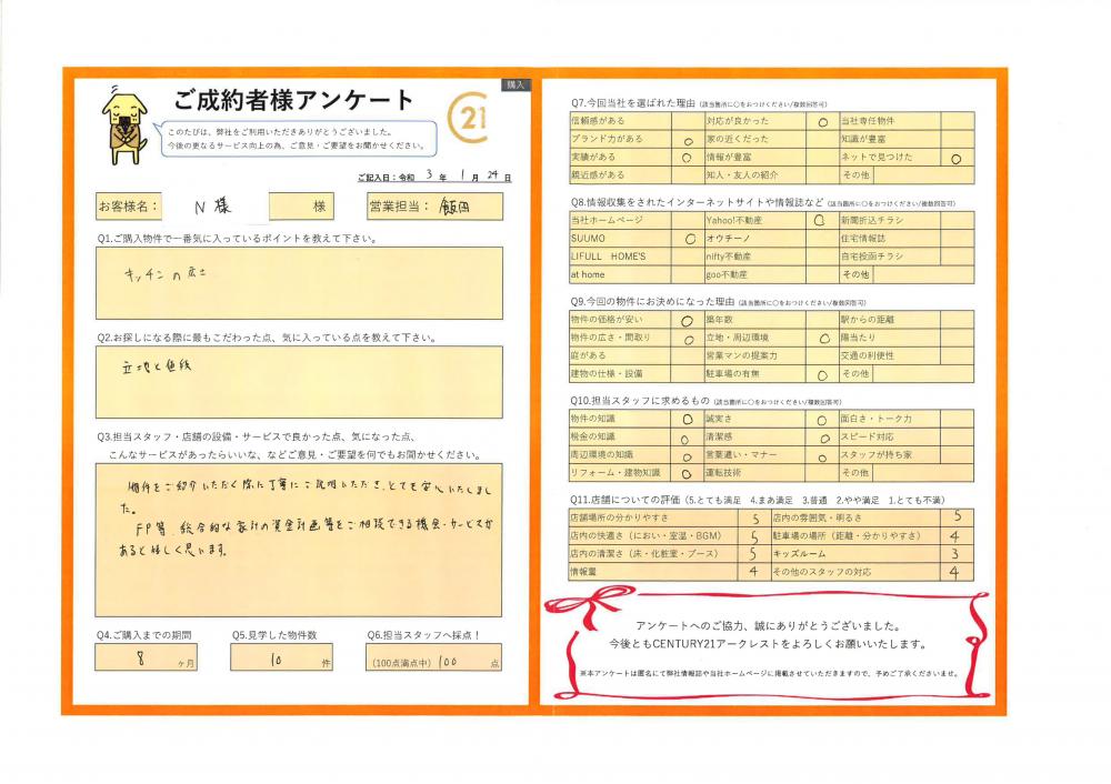この度は、お住まいご購入に弊社をご利用頂きましてありがとうございます。