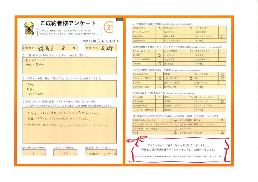 R3.2.23 練馬区 S様 | ご購入成約事例|おうちの仲介+(株式会社アークレスト)