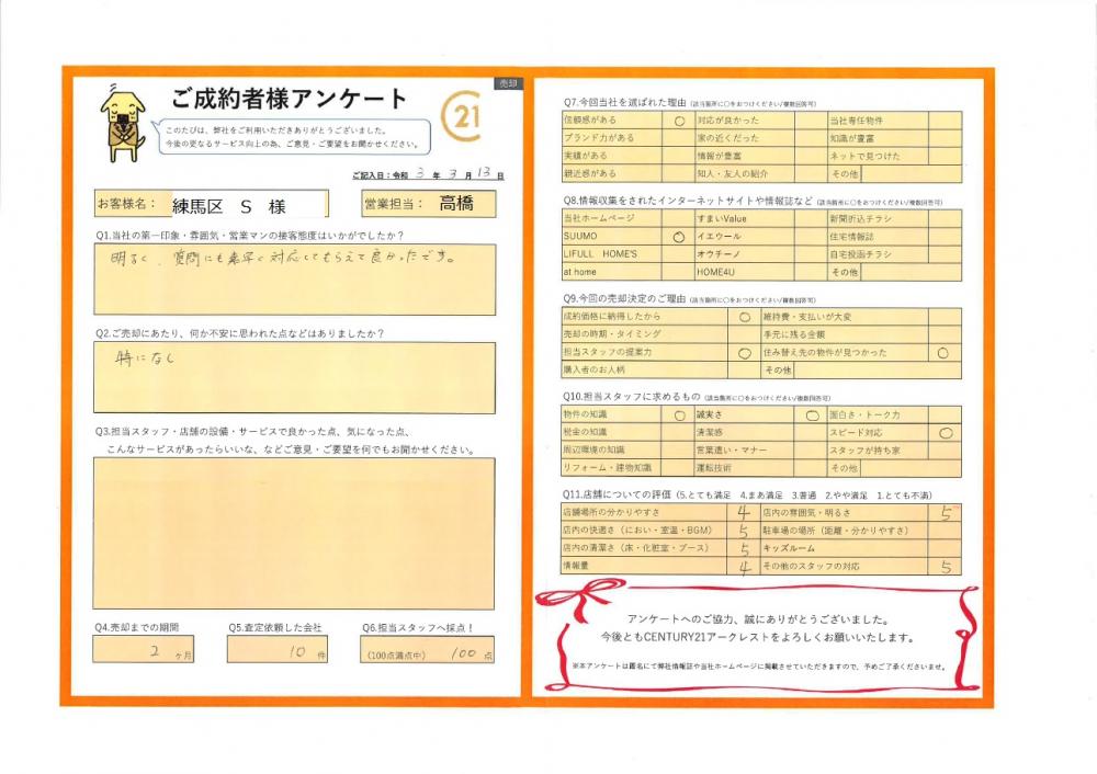 R3.3.14 練馬区 S 様 | ご売却成約事例|おうちの仲介+(株式会社アークレスト)