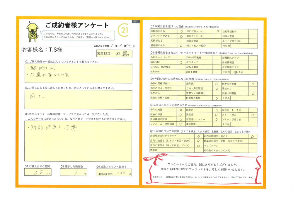 R3.3.13 東村山市 T.S様 | ご購入成約事例|おうちの仲介+(株式会社アークレスト)