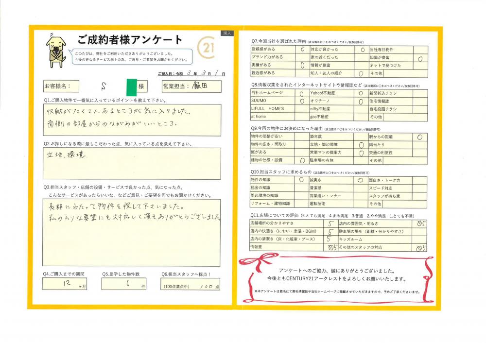 R3.3.1 新座市S様 | ご購入成約事例|おうちの仲介+(株式会社アークレスト)