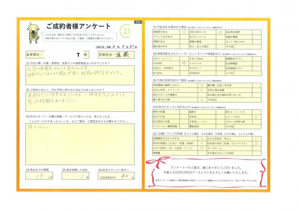 長い間ご売却をお任せいただけて、また最終的にはお引渡しまでもお手伝いができて本当に良かったです!
