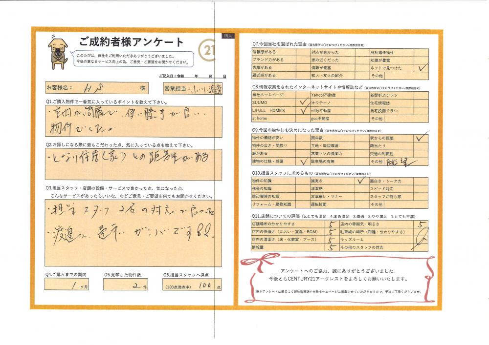 H.S様はお話がお上手ですので、私どもも楽しくご案内させていただきました。
