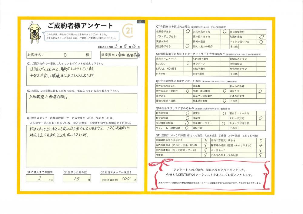 R3.8.16 所沢市O様 | ご購入成約事例|おうちの仲介+(株式会社アークレスト)