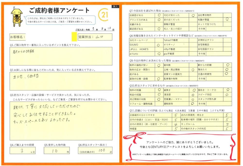 R3.8.13 所沢市 O様 | ご購入成約事例|おうちの仲介+(株式会社アークレスト)