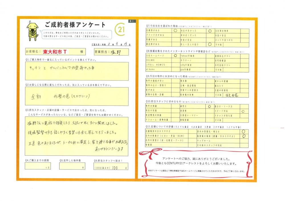 R3.9.18 東大和市 H.T 様 | ご購入成約事例|おうちの仲介+(株式会社アークレスト)