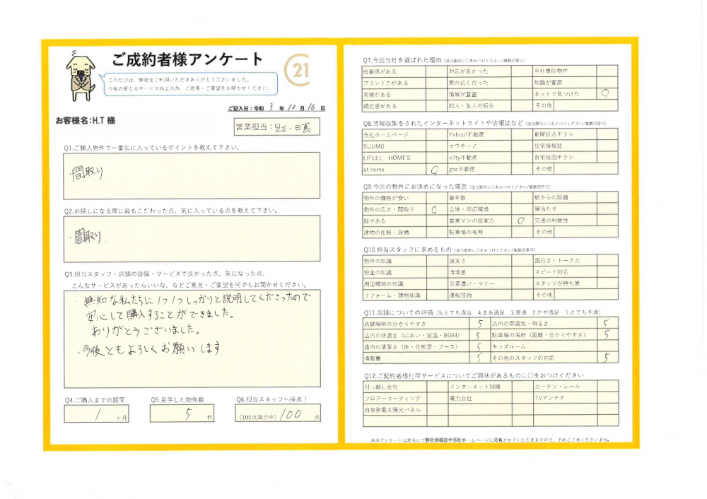 R3.10.16 H.T様 所沢市 | ご購入成約事例|おうちの仲介+(株式会社アークレスト)