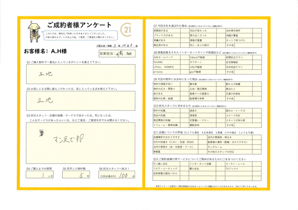 R3.10.3 A.H様 東久留米市 | ご購入成約事例|おうちの仲介+(株式会社アークレスト)