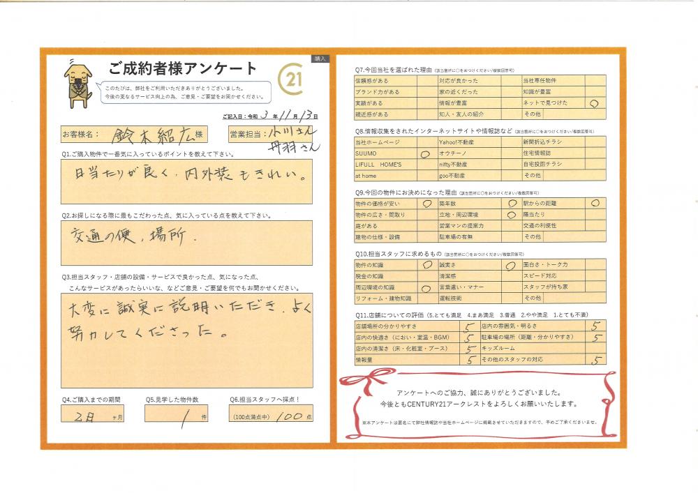 R3.11.13所沢市S.A様(購入)