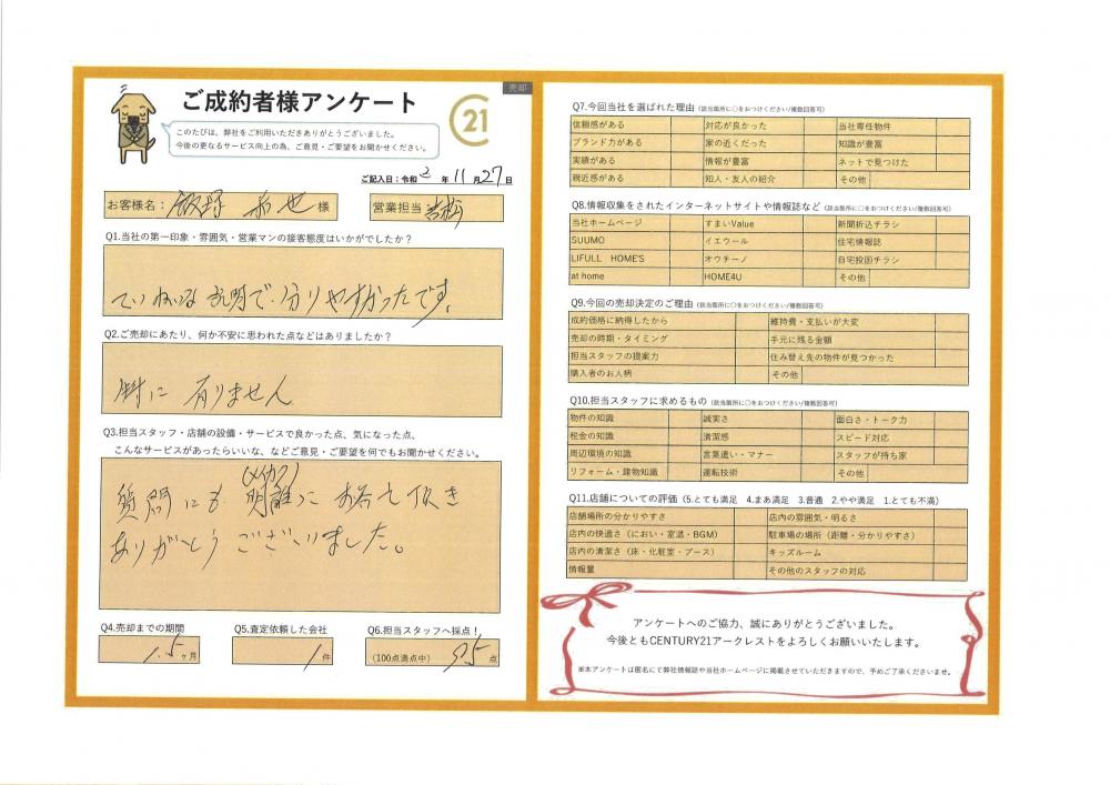 R3.11.27所沢市マンション(売却)I.K様 | ご売却成約事例|おうちの仲介+(株式会社アークレスト)