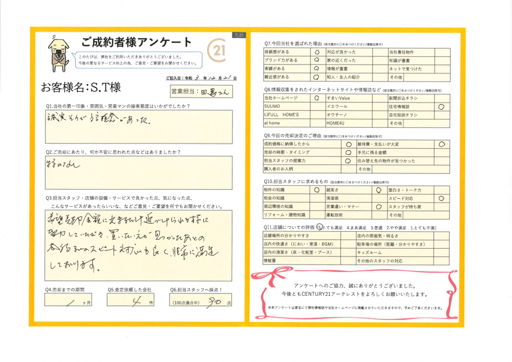 R3.12.21 所沢市S.T様 | ご売却成約事例|おうちの仲介+(株式会社アークレスト)
