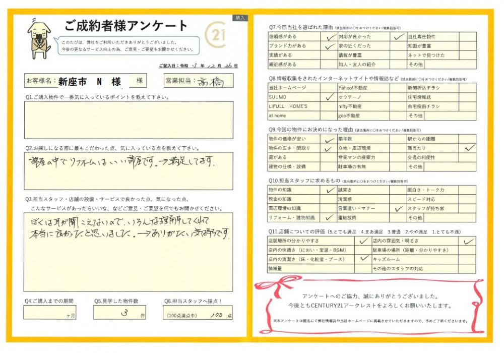 N様も仰るようにご契約いただきましたおうちは、リフォームがされていてすぐにご入居できる素晴らしい物件でございます!