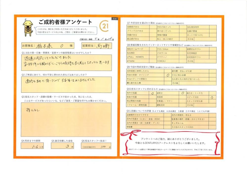 R4.1.26 栃木県 O様 | ご売却成約事例|おうちの仲介+(株式会社アークレスト)