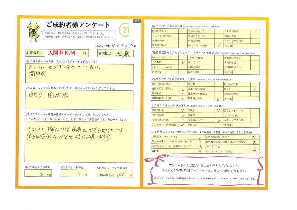 R4.2.20 入間市 K.M 様|おうちの仲介+(株式会社アークレスト)