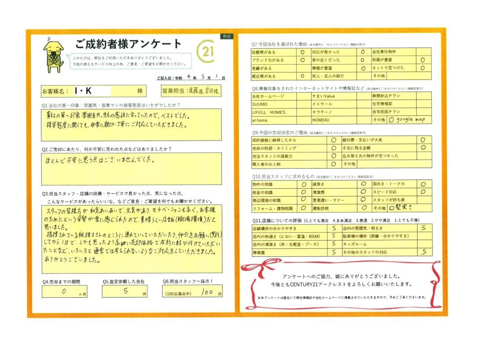 この度は弊社に不動産のご売却をお任せいただきまして誠にありがとうございました。