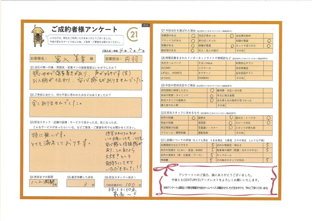 お住み替え先も遠方でしたが、何度も一緒に内見して決まって安心しました。