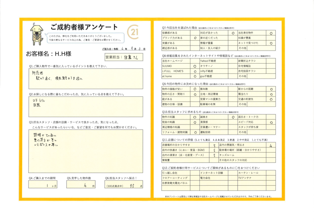これからもH様のお役立てに繋がるよう誠心誠意努めてまいります!