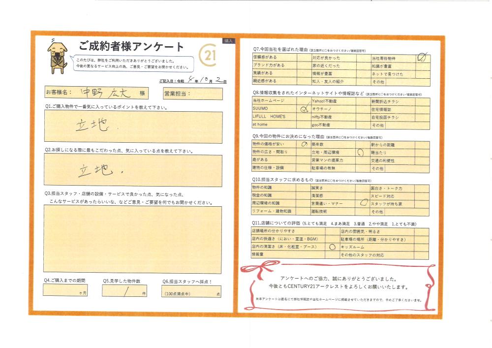 R4.10.2所沢市・売地購入・K.N様 | ご購入成約事例|おうちの仲介+(株式会社アークレスト)
