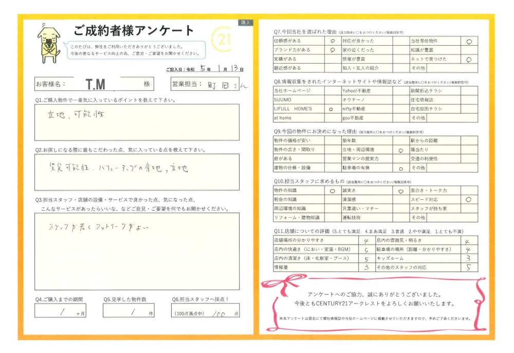 R5.1.13 東久留米市 T.M様 | ご購入成約事例|おうちの仲介+(株式会社アークレスト)