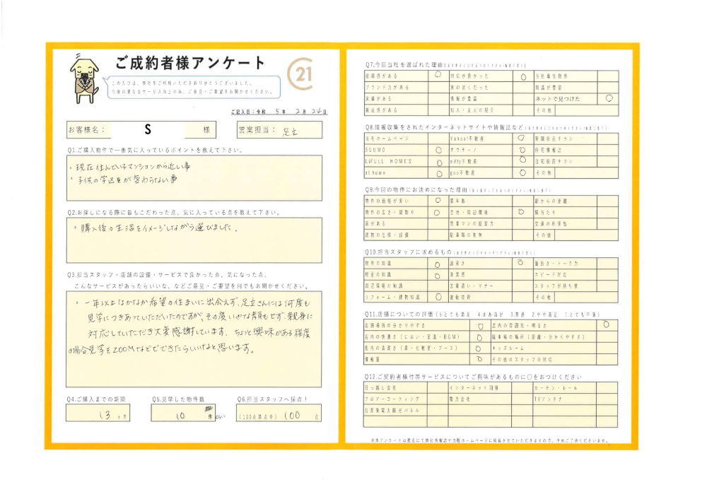 この一年、S様とご一緒にお住まい探しをすることができ、そして素敵なお住まいを見つけることができたこと、本当に嬉しく思います!