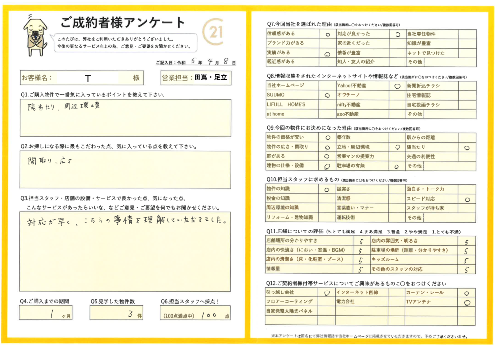 R5.4.8 清瀬市 T様 | ご購入成約事例|おうちの仲介+(株式会社アークレスト)