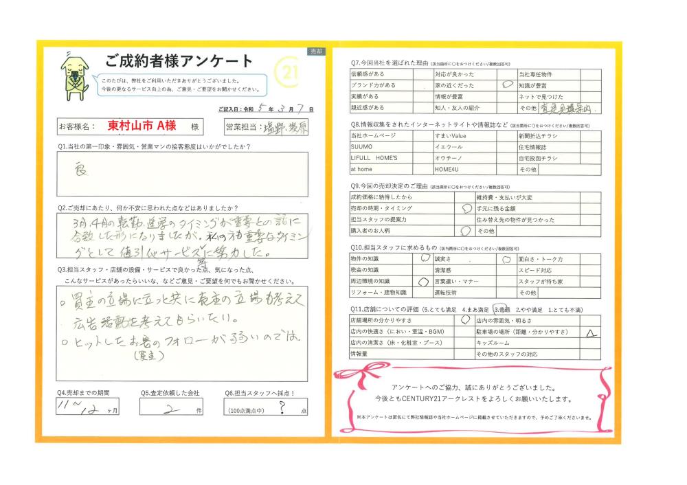 R5.3.7 東村山市 A 様 | ご売却成約事例|おうちの仲介+(株式会社アークレスト)