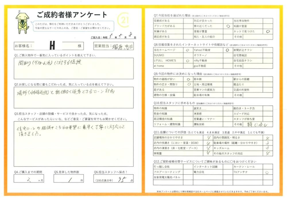 R5.5.8 所沢市 H様 | ご購入成約事例|おうちの仲介+(株式会社アークレスト)