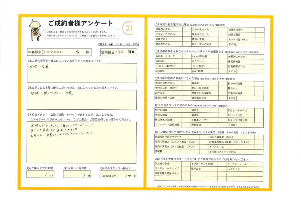2023年11月24日 S様 | ご購入成約事例|おうちの仲介+(株式会社アークレスト)