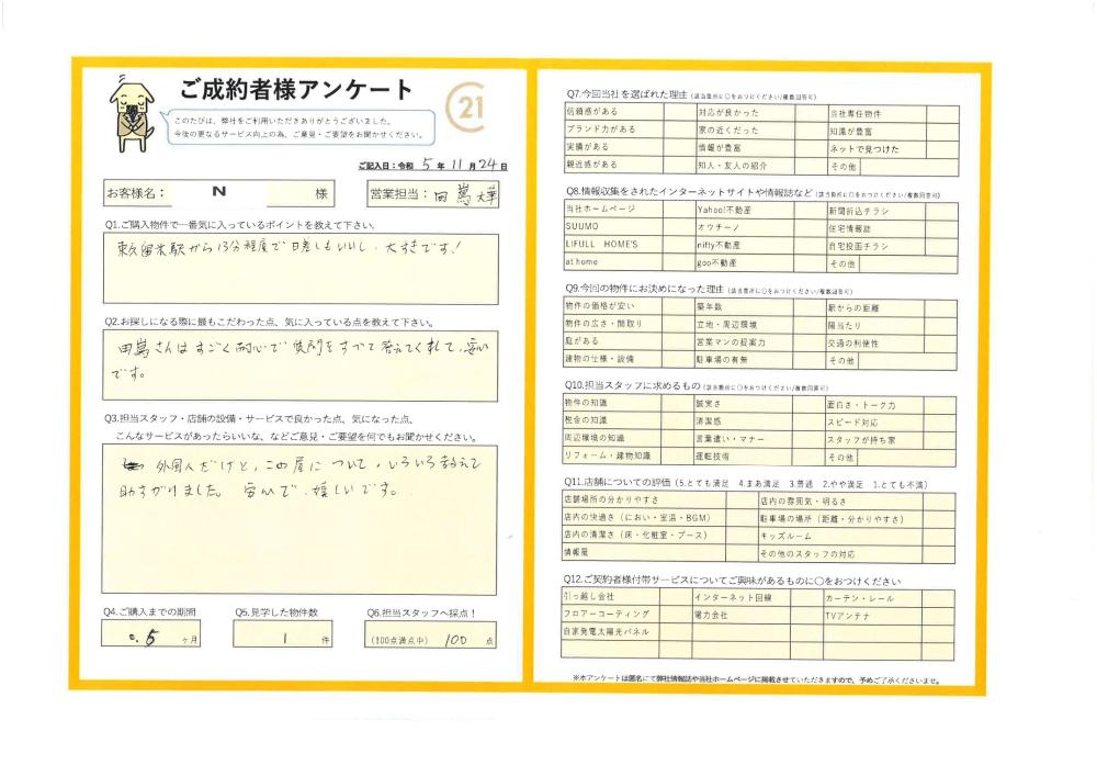 2023年11月24日 N様 | ご購入成約事例|おうちの仲介+(株式会社アークレスト)